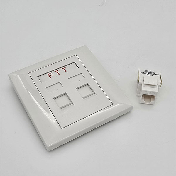 562121-FTT Networking Face Plate, Two Gangs White with Cat6 Keystone Jack w shuttle 86X86mm